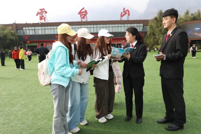 在云台山景区入口,干警们向过往游客发放精心制作的“3·15”法治宣传彩页,彩页内容涵盖旅游消费维权指南、食品安全法律知识、纠纷解决途径等实用信息,图文并茂、通俗易懂。